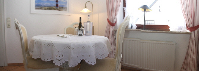 Die gemütliche Zwei-Zimmer- Obergeschosswohnung mit komfortabler und geschmackvoller Einrichtung erwartet Sie im Haus Oland.