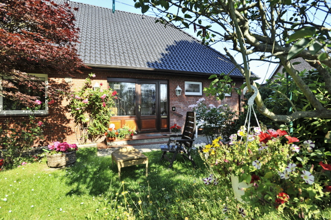 Das komplette Obergeschoss eines ruhig gelegenen Einzelhauses mit schönem Garten und geschütztem Sonnenplatz mit Strandkorb bietet Ihnen Platz und genügend Raum zur Erholung.