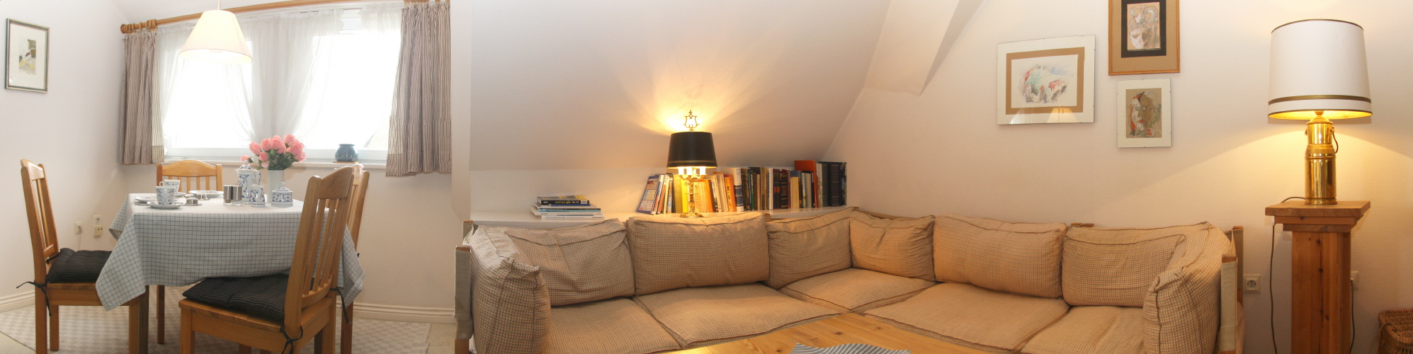 Eine wunderschöne Dachgeschosswohnung unter Reet in ruhiger Wattlage. Erholen Sie sich bei ausgedehnten Wattspaziergängen und abends ist es nur ein Katzensprung ins benachbarte Kampen.