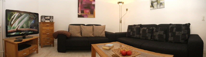 Neben einem großzügigen Wohnzimmer mit bequemer Sitzecke und separatem Esstisch stehen Ihnen noch zwei Schlafzimmer zur Verfügung - einmal mit Ehebett und einmal mit einem ausziehbaren Doppelbett. Jedes Schlafzimmer hat einen zusätzlichen Fernseher.