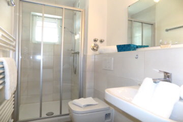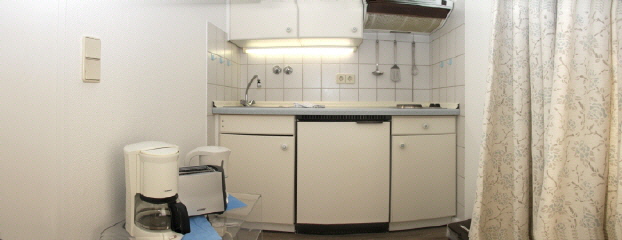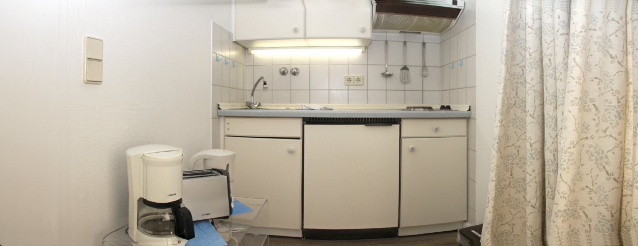 Eine Küchenzeile und ein modernes Bad mit Dusche sowie ein separates Schlafzimmer mit Doppelbett vervollständigen diese sehr strandnah und doch zentral gelegene Wohnung.