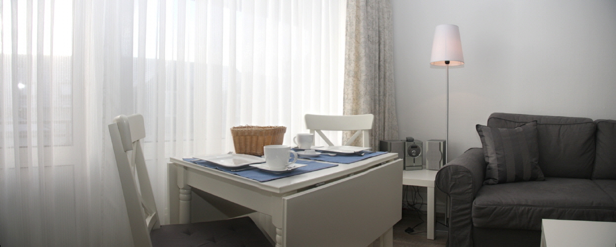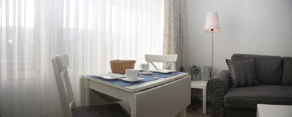 Diese äußerst gemütliche Wohnung auf einer Ebene für zwei Personen mit separatem Esstisch und bequemer Sitzgarnitur lädt zum Erholen ein.