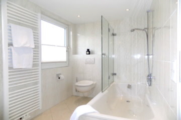 Zwei Schlafzimmer mit Doppelbetten sowie zwei Badezimmer erwarten Sie hier. In einem der Schlafzimmer gibt es einen zusätzlichen Fernseher.