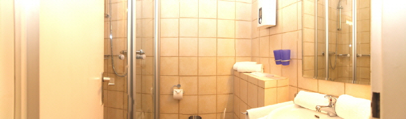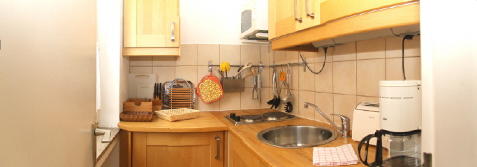 Neben einem modernen Badezimmer mit Glashalbrund- dusche gibt es noch eine gut ausgestattete Küche mit Geschirrspüler und Mikrowelle.