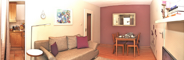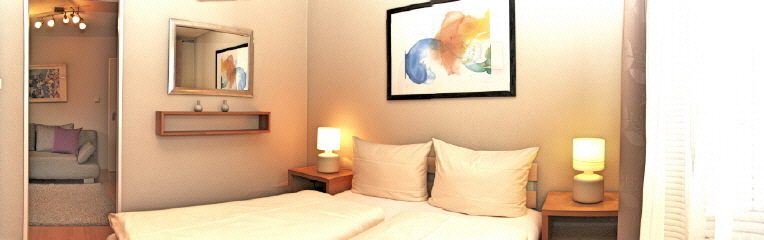 Neben dem Schlafzimmer mit bequemem Doppelbett und ausreichend Schrankfläche hat diese Wohnung noch die Möglichkeit eine bequeme Schlafcouch zu nutzen, falls einmal mehr als zwei Gäste hier wohnen möchten.
