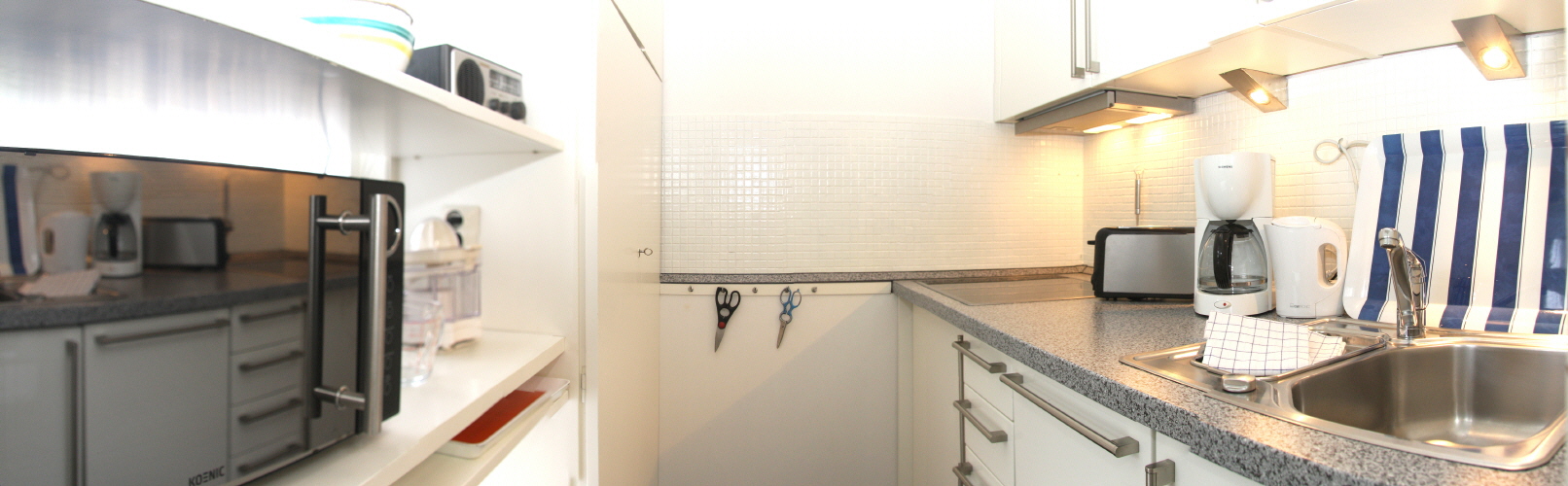 Das Haus verfügt über ein Wohnzimmer, zwei Schlafzimmer, eine kuschelige Sitz-Ecke mit Flachbildfernseher und einen großzügigen Essplatz. Die separate weiße Hochglanz-Küche mit Ceran-Kochfeld, Geschirrspülmaschine und Mikrowelle sowie ein helles Dusch-Bad mit Tageslicht vervollkommnen das anspruchsvolle Ambiente. Ein großzügiger Parkplatz direkt vor dem Haus komplettiert diese charmante Wohnung.