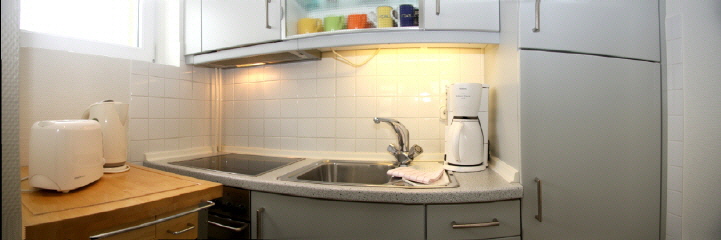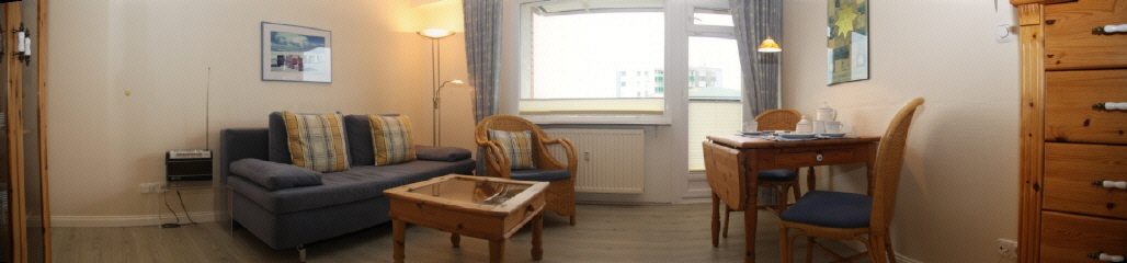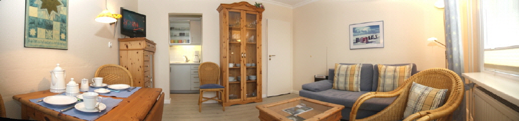 Die helle Wohnung hat ein gemütliches Wohnzimmer mit bequemem Sofa und extra Esstisch, separates Schlafzimmer mit Ehebett und ein Badezimmer mit Duschbad und mit Fön.