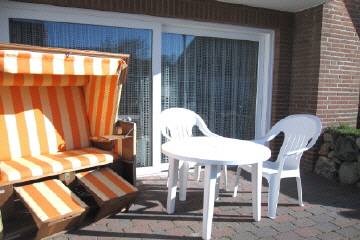 Auf Ihrer Terrasse atmen Sie den Duft der nahen Nordsee im eigenen Strandkorb.
